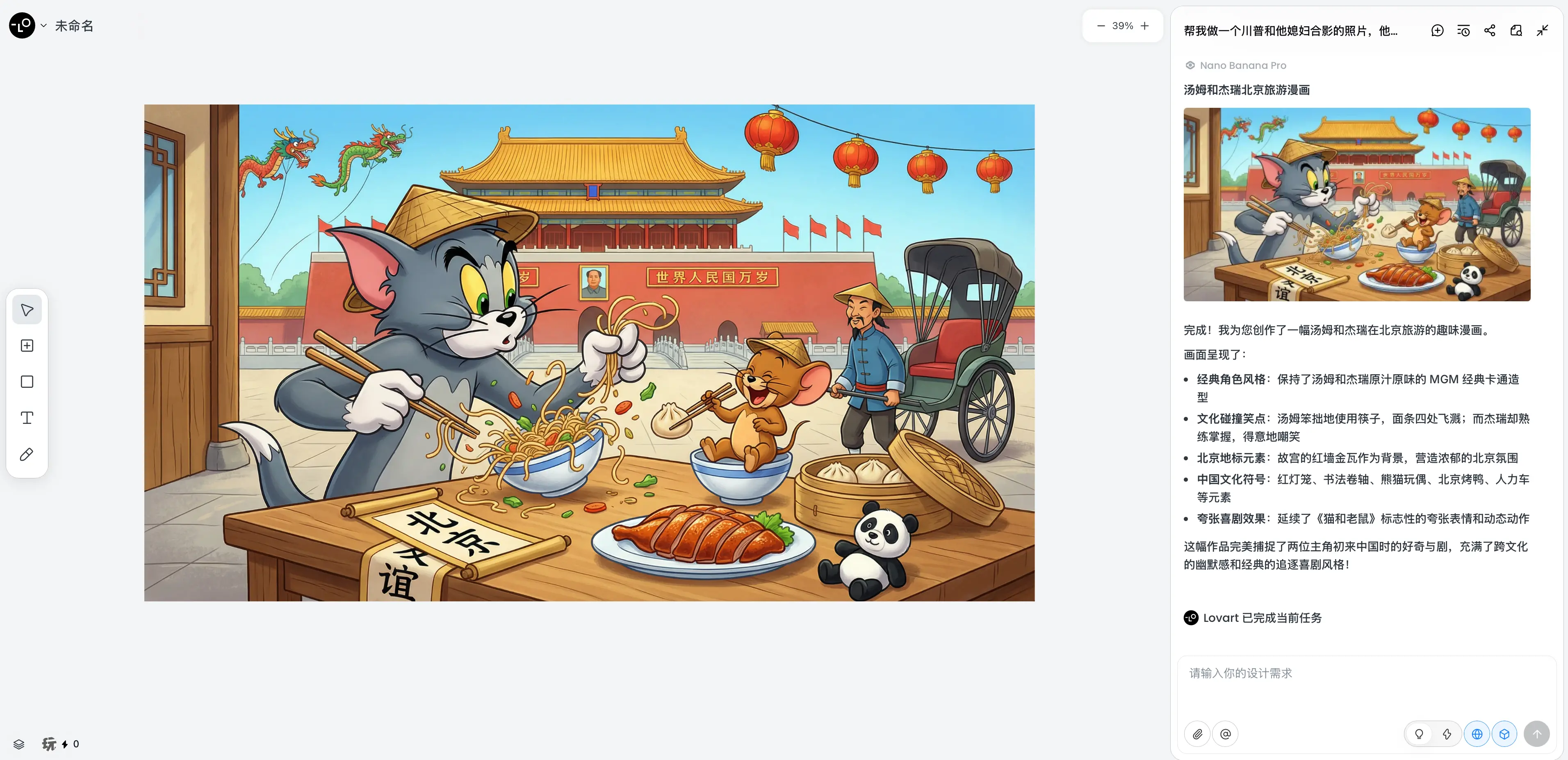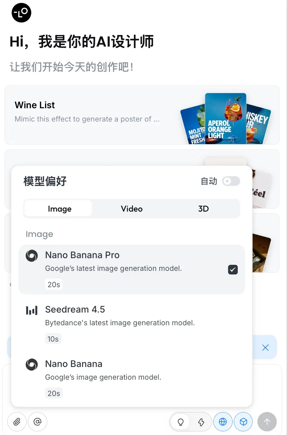 打开 Lovart 的 WEB 页面,在创作界面右下角就能找到 Nano BP